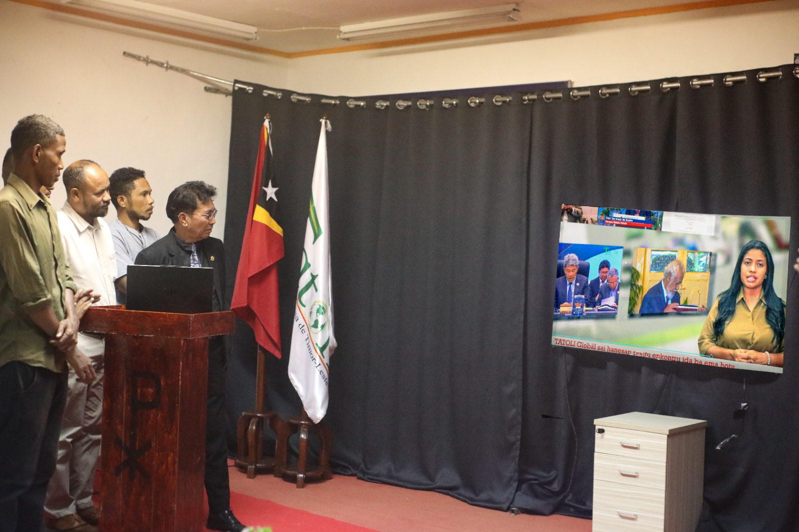 DILI, (MÍDIA SECOMS) — Sekretáru Estadu Komunikasaun Sosiál, Expedito Dias Ximenes hamutuk ho Prezidente Konsellu Diretivu Tatoli, Noemio Falcão no kargu xefia sira , iha kinta feira ne’e halo lansamentu ba Ajénsia Notisioza Tatoli nia programa foun ida ho naran “Tatioli Globál”